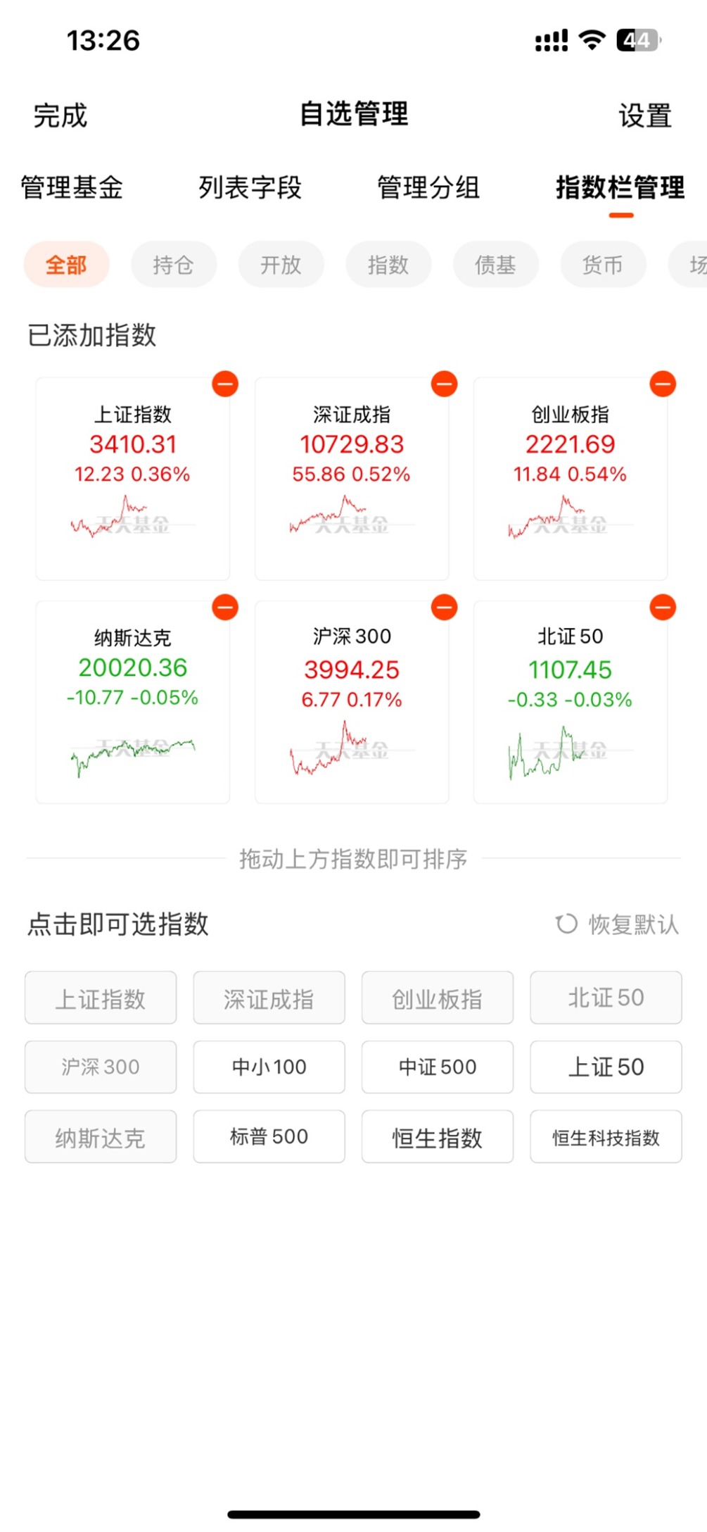 3.【自选】分组指数栏支持自定义,个性化跟踪指数行情