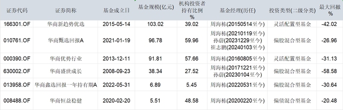 由于业绩突出,周海栋后担纲发行了华商甄选回报、华商鑫选回报一年期、华商恒益稳健等三只产品。均衡稳健的投资风格,也让周海栋颇受机构青睐。2024年中报数据显示,华商恒益稳健的机构持有占比达到了48.58%。