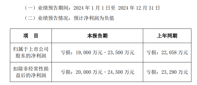 降薪的原因与该公司预计的2024年继续亏损密不可分。据正业科技同日发布的2024年度业绩预告显示,预计2024年实现归属于上市公司股东的净利润为亏损1.9亿元至2.35亿元,扣非后净利润为亏损2亿元至2.45亿元。