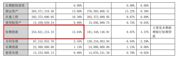 不仅如此,彼时的正业科技还存在明显的资金短缺现象。截至2022年二季度末,正业科技账面货币资金只有6667.23万元。与之对应的是,短期借款2.55亿元、一年内到期的非流动负债0.04亿元、长期借款0.23亿元,长短期债务合计为2.82亿元。