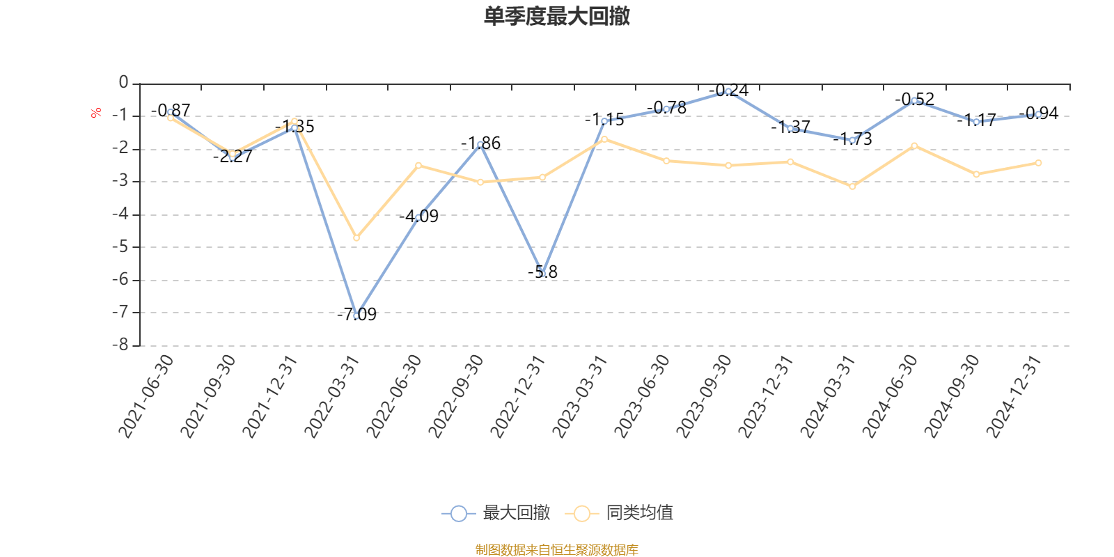 截至1月21日,基金近三年最大回撤为11.89%,同类可比基金排名122/502。其中,单季度最大回撤出现在2022年一季度,为7.09%。