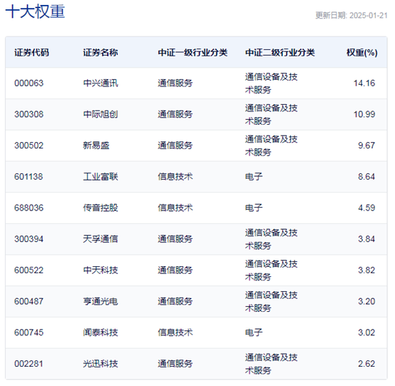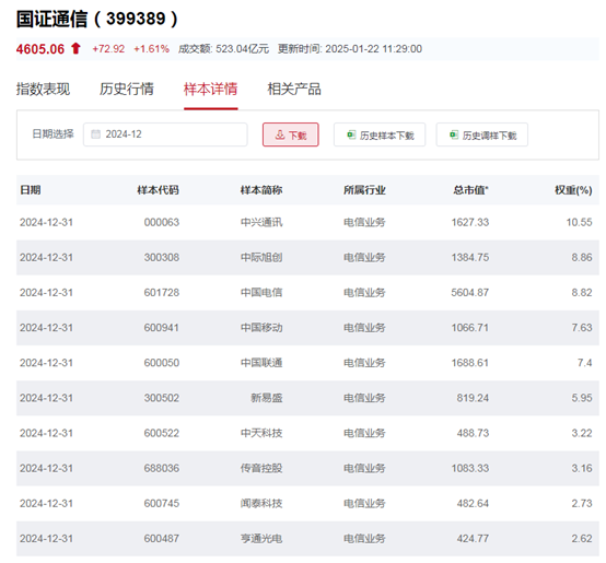 国证通信指数主要权重股