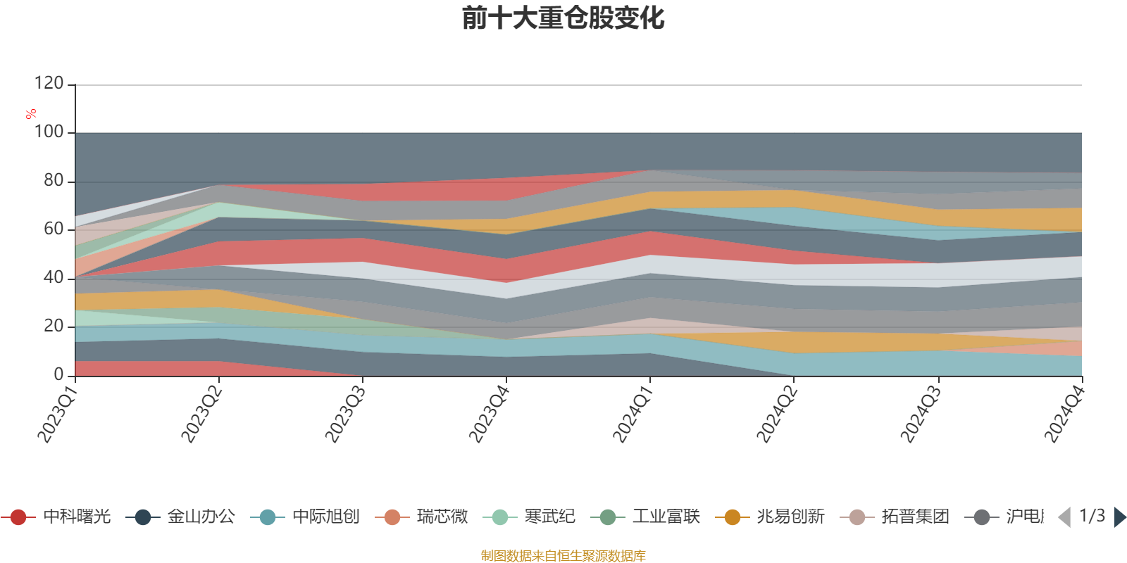 该基金持股集中度较高,近2年前十大重仓股集中度长期超过60%。截至2024年四季度末,基金十大重仓股分别是韦尔股份、沪电股份、水晶光电、立讯精密、新易盛、中际旭创、天孚通信、歌尔股份、瑞芯微、拓普集团。