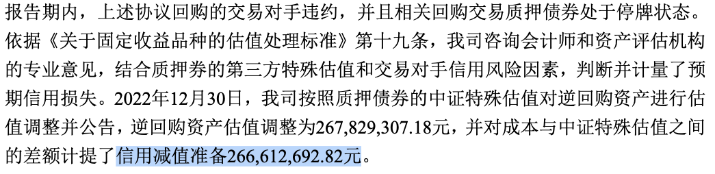对于净值曲线在年末的“一字型暴跌”,汇盈纯债基金和博盈纯债基金在2022年报和2023年报都提及,由于债券质押式协议回购的交易对手违约,并且相关回购交易质押债券处于停牌状态,计量了预期信用损失,造成基金净值回撤较大。其中2022年末汇盈纯债基金和博盈纯债基金分别对违约的买入返售金融资产计提了信用减值准备2.67亿元和2.45亿元,2023年末继续分别计提减值准备9621.69万元和8965.36万元。