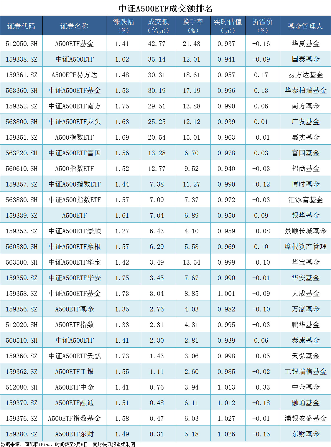 换手率方面,华夏A500ETF基金持续位居第一,达到21.43%。