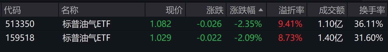 (原标题:国际油价显著回落,标普油气ETF跌逾2%,溢价率仍在9%左右)
