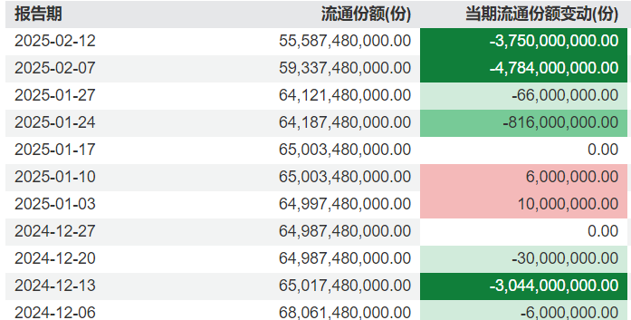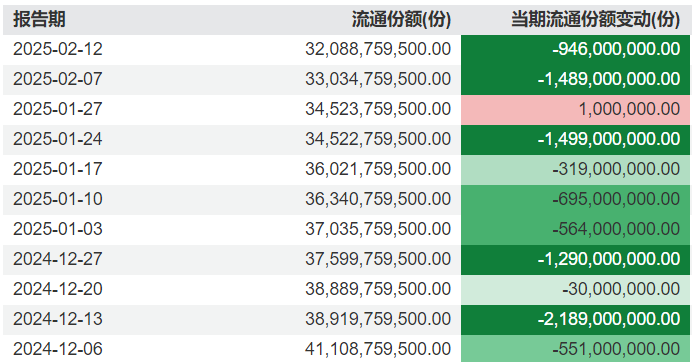 不过,一些ETF的份额却在下降。有产品不到两周时间,份额减少了超80亿份。
