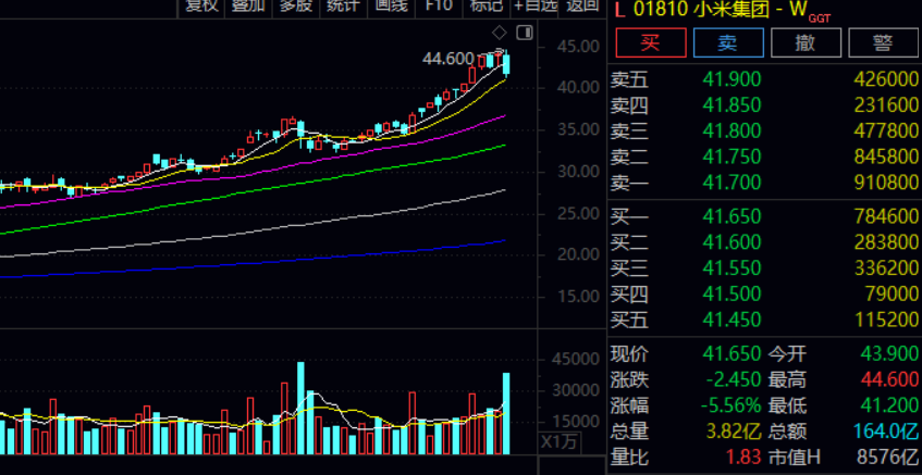 多只指数成份股也呈同样走势。如小米集团-W收盘跌超5%;阿里巴巴-W盘中一度涨超9%,收盘时回落至2.55%。