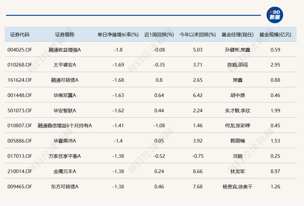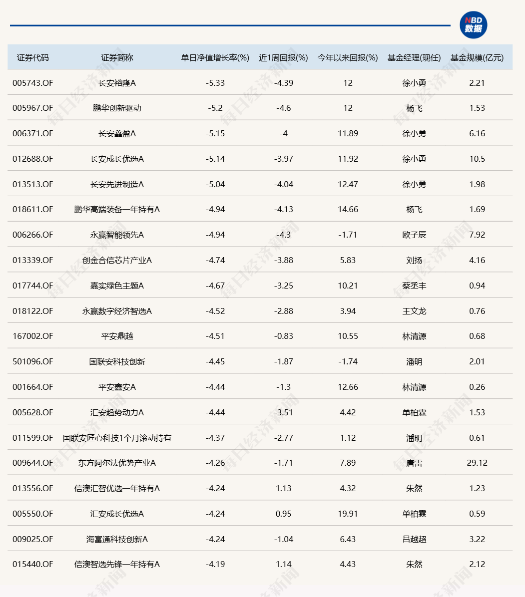 (原标题:A股冲高回落,5只基金今日跌超5%)