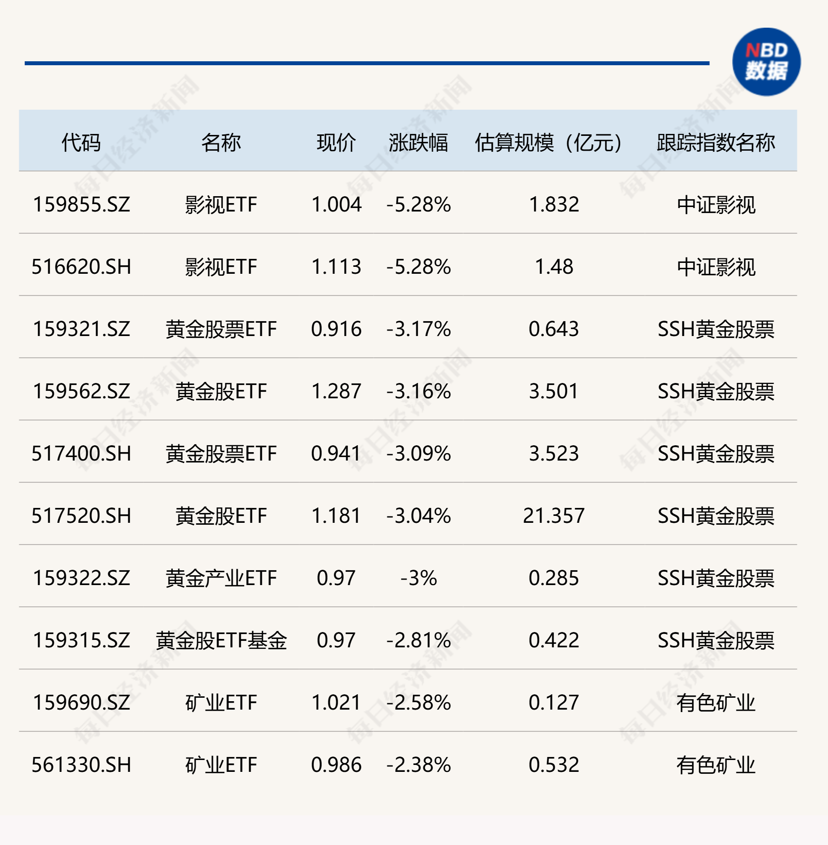 下跌方面,影视ETF跌逾5%,黄金股相关ETF跌逾3%。