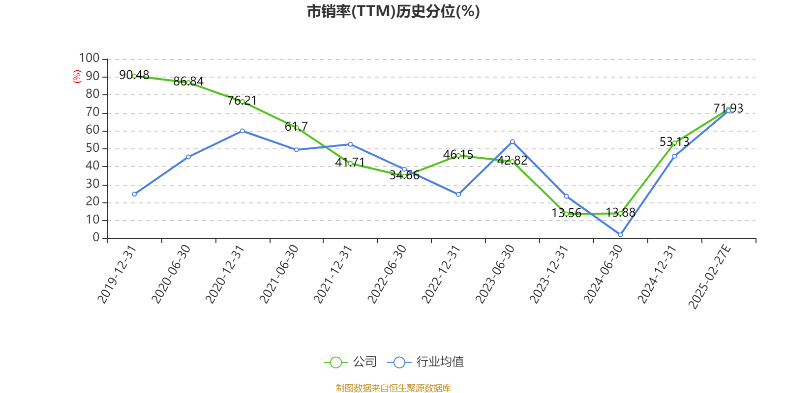 市盈率、市净率为负时,不显示当期分位数,会导致折线图中断。