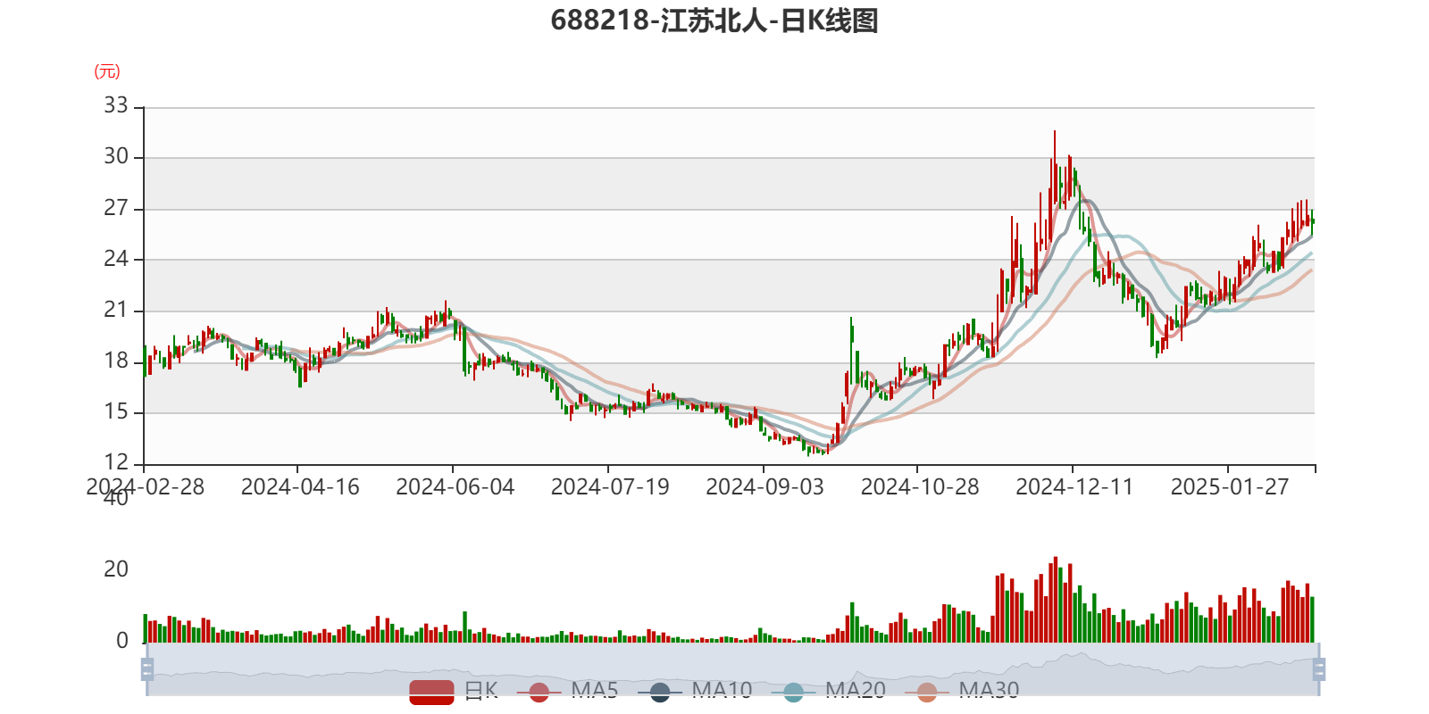 中证智能财讯江苏北人(688218)2月27日晚间披露2024年业绩快报,公司实现营业收入7亿元,同比下降18.01%;归母净利润4797.48万元,同比下降41.36%;扣非净利润4290.98万元,同比下降31.99%;基本每股收益0.41元,加权平均净资产收益率为5.1%。以2月27日收盘价计算,江苏北人目前市盈率(TTM)约为64.75倍,市净率(LF)约3.41倍,市销率(TTM)约4.63倍。