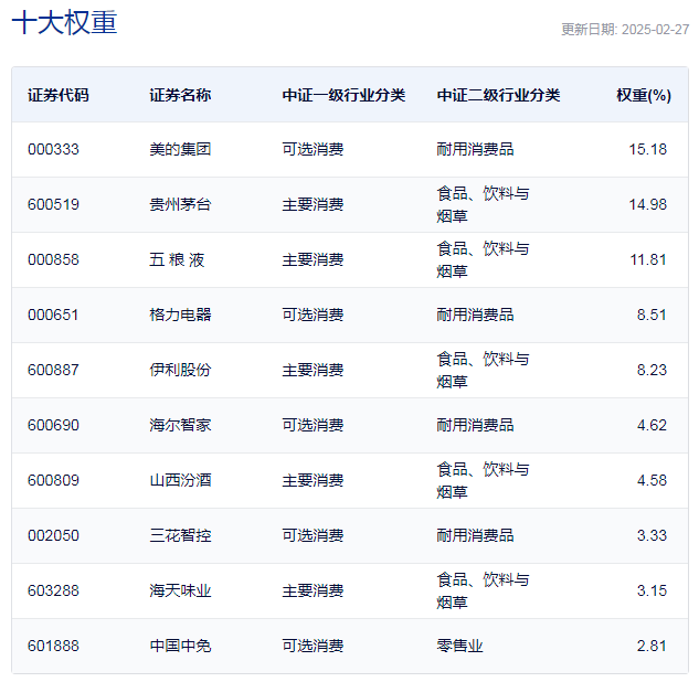 中证消费50指数主要权重股