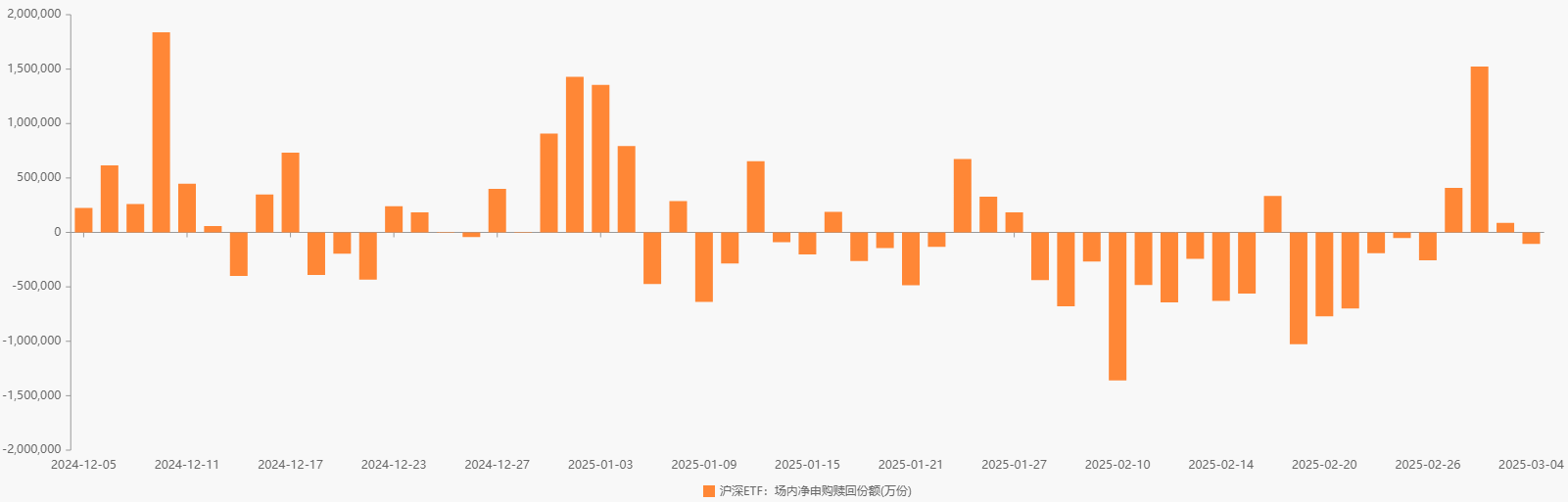 昨日(3月4日),东方财富Choice数据显示,场内股票型ETF净赎回10.55亿份;其中,沪市股票型ETF净赎回24.78亿份,深市股票型ETF净申购14.22亿份。以最新净值计,昨日市场净赎回10.67亿元。