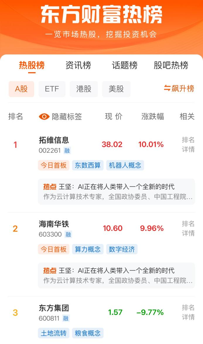 3月5日,两市震荡反弹,三大指数均小幅收涨。东方财富热股人气榜前三的股票中,拓维信息位列第1,海南华铁位列第2,东方集团位列第3。