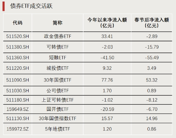 债券ETF方面,截至3月5日,政金债券ETF(511520)总规模超404亿元,3月以来日均成交金额超65亿元,交投活跃。作为全市场唯一长久期政金债ETF,政金债券ETF(511520)的底层资产是有“准国债”之称的政金债,目前持仓的债券平均久期为7.5年,以国开5、10、15年的债券组合为主要持仓,回撤和波动都较小。具体来看,最大回撤在1.5%左右,远低于30年国债的4.5%,整体风险收益比更高,且政金债券ETF可T+0交易,适合作为债券市场波段交易、配置以及场内现金管理的工具。