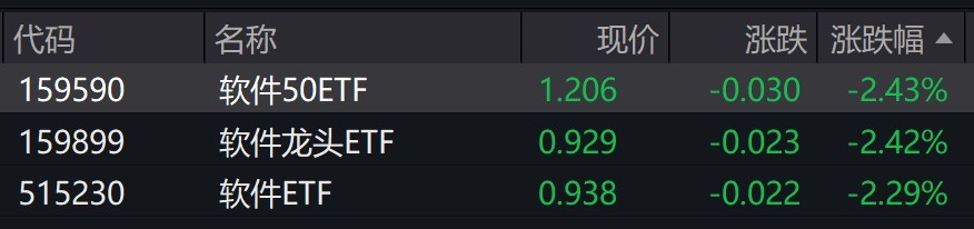(原标题:软件股早盘走弱,软件相关ETF跌逾2%)