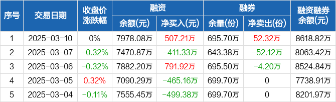 电力ETF:融资净买入507.21万元,融资余额7978.08万元(03-10)