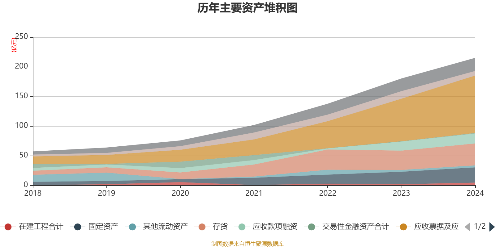 资产重大变化方面,截至2024年末,公司应收票据及应收账款较上年末增加34.65%,占公司总资产比重上升5.15个百分点;货币资金较上年末减少39.22%,占公司总资产比重下降3.47个百分点;在建工程合计较上年末增加167.33%,占公司总资产比重上升1.15个百分点;存货较上年末增加13.39%,占公司总资产比重下降0.89个百分点。