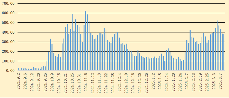 (图1:北交所股票的日成交额情况;数据来源:沪、深、北交易所的公开信息披露;数据区间:2024年9月2日至2025年3月11日,下同)