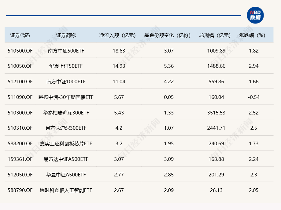 ETF规模速报 | 中证500ETF、上证50ETF、中证1000ETF,上周五净流入额均超10亿元