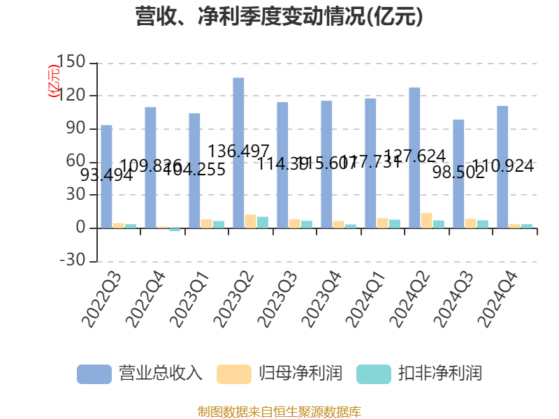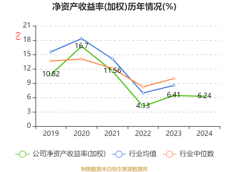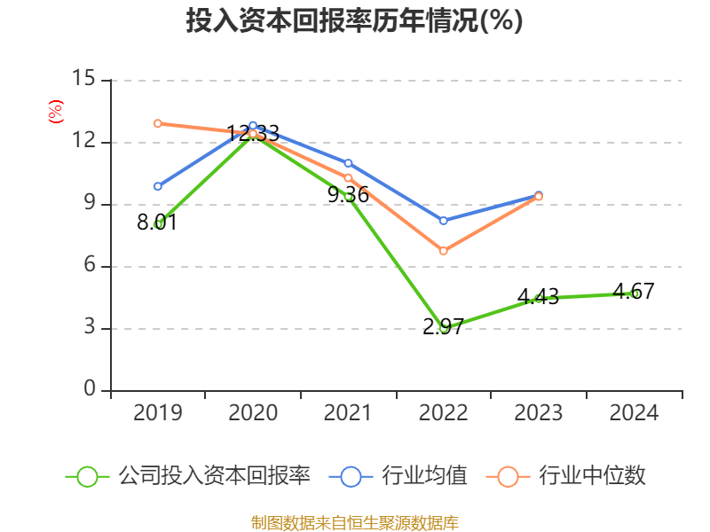 数据显示,2024年公司加权平均净资产收益率为6.24%,较上年同期下降0.17个百分点。公司2024年投入资本回报率为4.67%,较上年同期上升0.24个百分点。