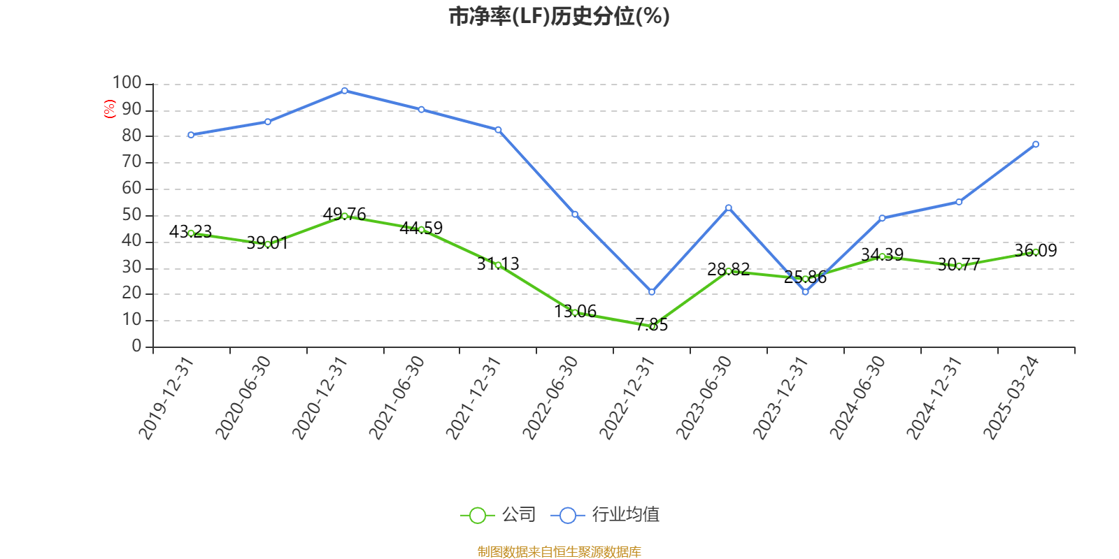 市盈率、市净率为负时,不显示当期分位数,会导致折线图中断。
