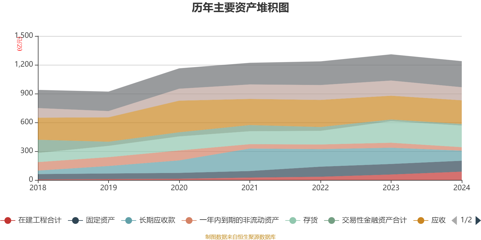 资产重大变化方面,截至2024年末,公司长期应收款较上年末减少37.81%,占公司总资产比重下降4.45个百分点;在建工程合计较上年末增加52.92%,占公司总资产比重上升2.68个百分点;货币资金较上年末减少13.55%,占公司总资产比重下降1.04个百分点;存货较上年末增加0.27%,占公司总资产比重上升1.04个百分点。