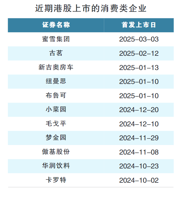 据上海证券报记者统计,自2024年以来,已有10家内地的消费类企业在港股上市,一扫之前的冷清局面。特别是2024年下半年以来,一批重量级消费类企业赴港上市,极大地点燃了市场热情。