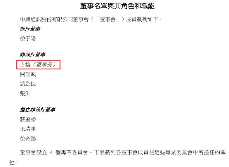 3月31日,中兴通讯公布董事名单,非执行董事方榕为新任董事长。
