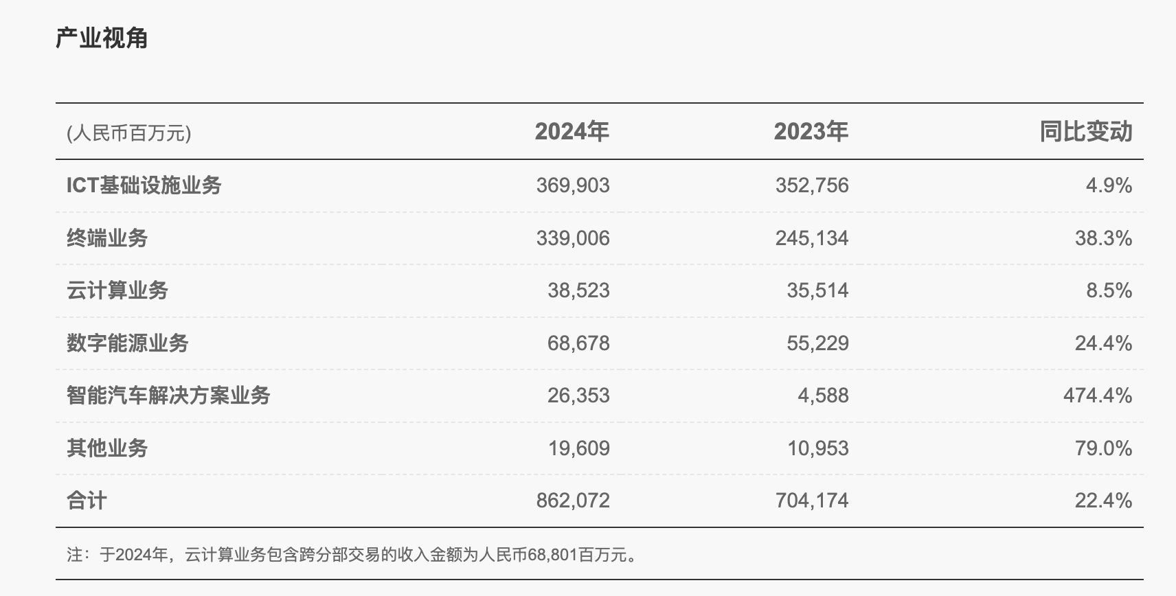2024年终端业务营收3390.06亿元,同比增长38.3%,大基数的高增长,受益于手机业务的高歌猛进和汽车的快速成长。