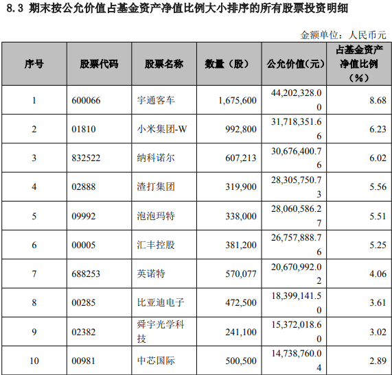 南方瑞合三年定开混合提升成长股占比,增加电子等行业投资比重,挖掘了北交所股票的投资机会。截至去年底,在十大重仓股中,小米集团、纳科诺尔、比亚迪电子、舜宇光学科技、中芯国际位列其中,占比达到6.23%、6.02%、3.61%、3.02%、2.89%。