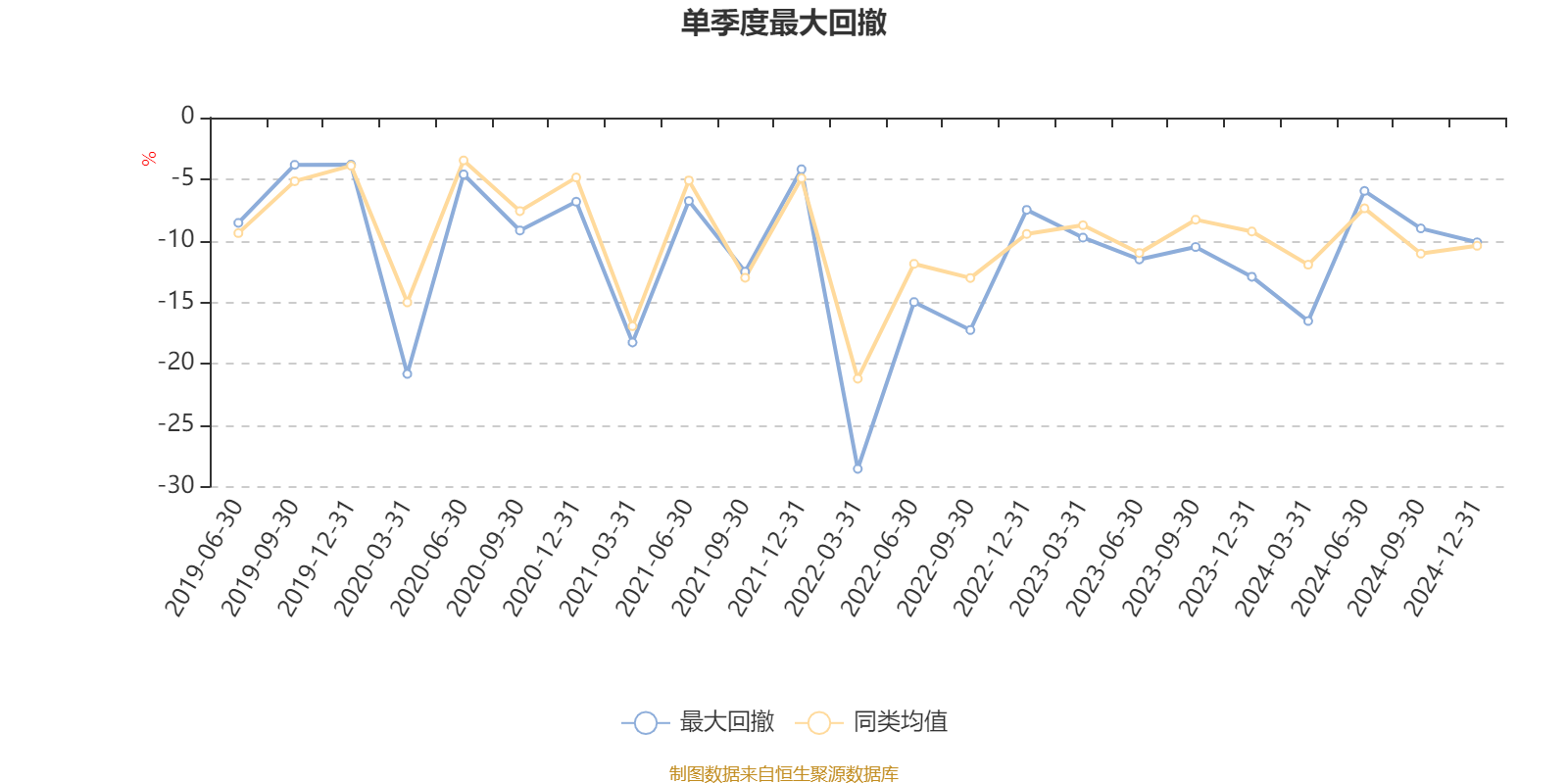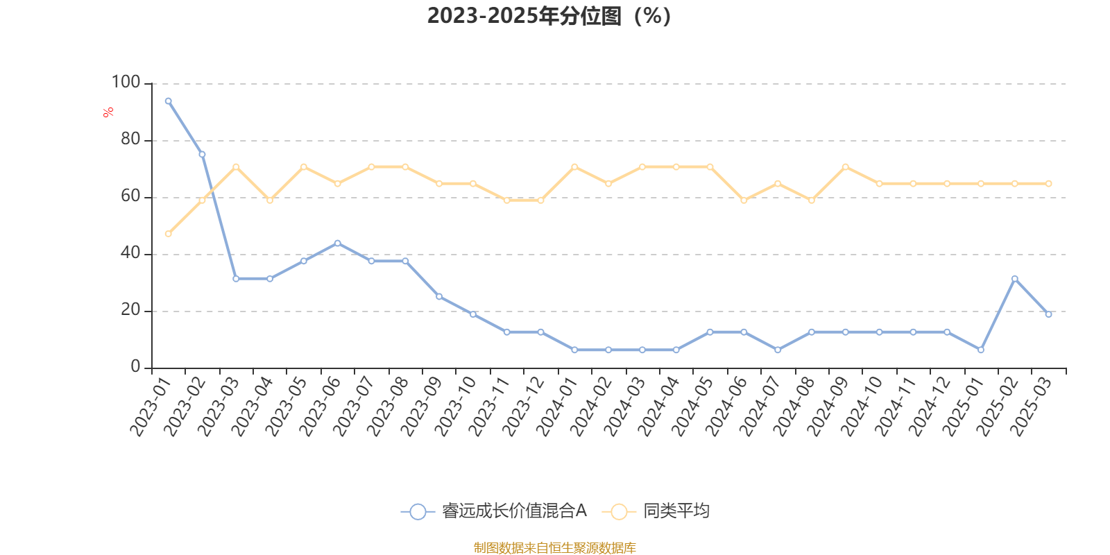 通过所选区间该基金净值增长率分位图,可以观察该基金与同类基金业绩比较情况。图为坐标原点到区间内某时点的净值增长率在同类基金中的分位数。