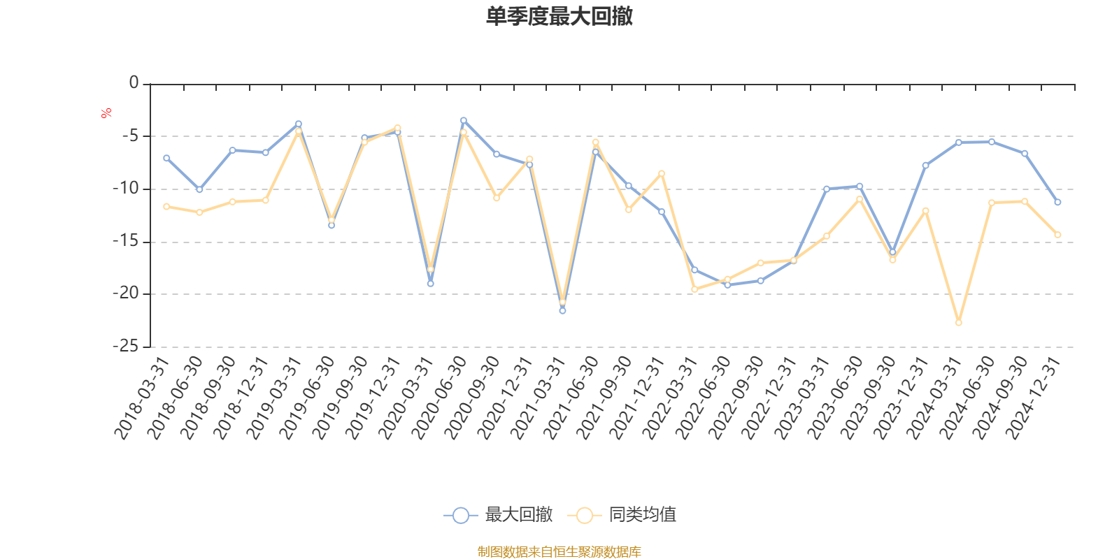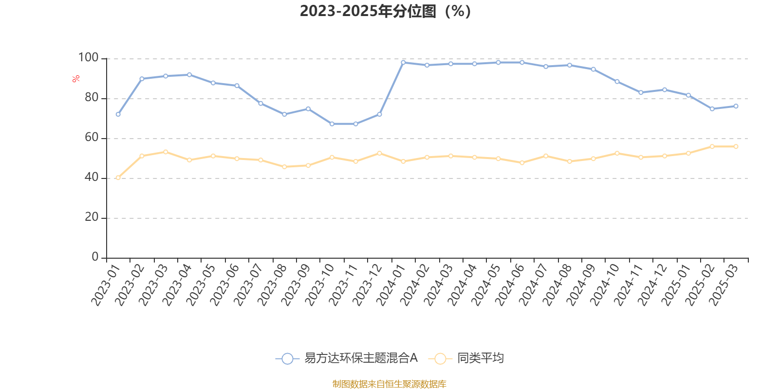 通过所选区间该基金净值增长率分位图,可以观察该基金与同类基金业绩比较情况。图为坐标原点到区间内某时点的净值增长率在同类基金中的分位数。