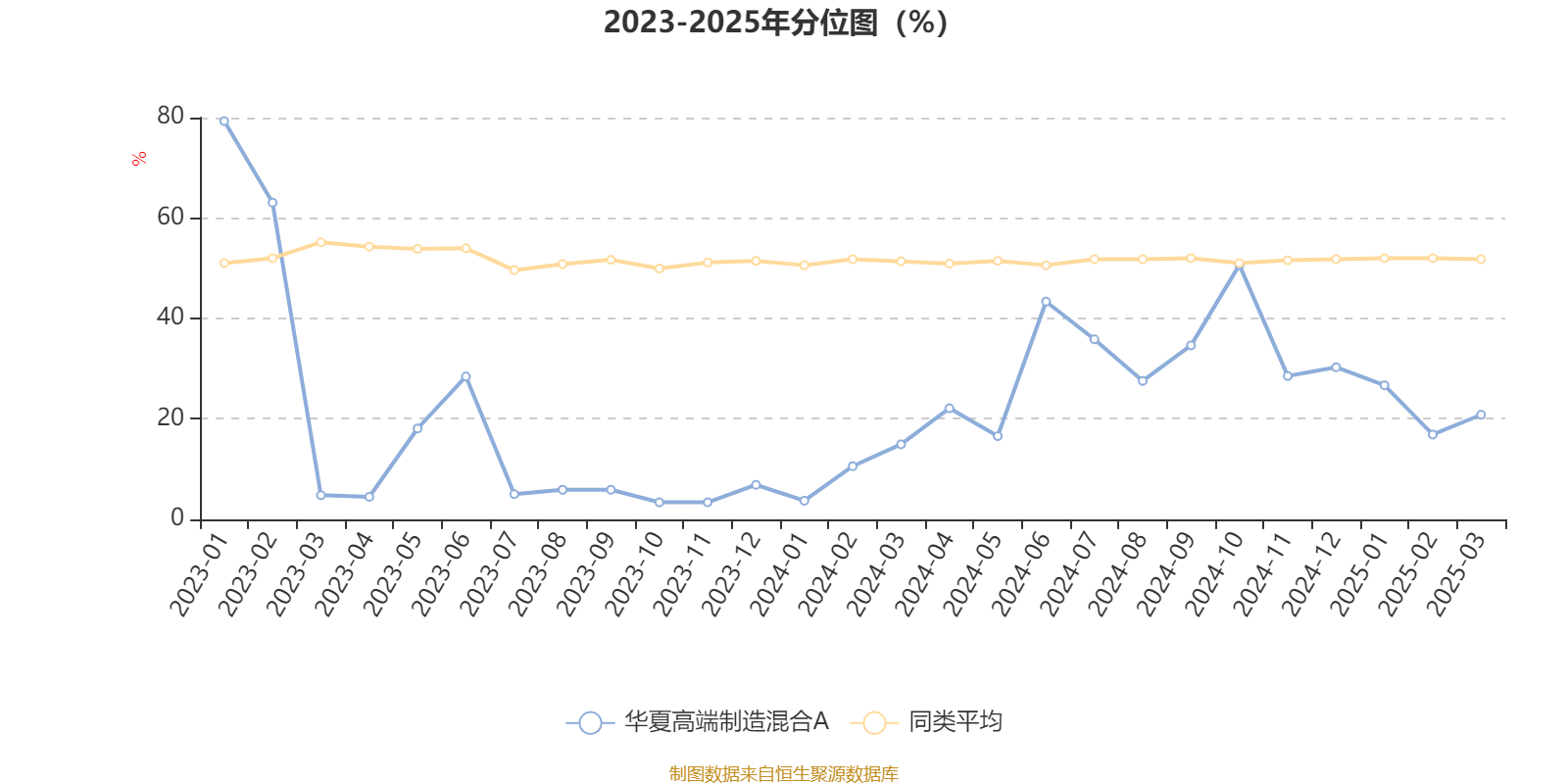 通过所选区间该基金净值增长率分位图,可以观察该基金与同类基金业绩比较情况。图为坐标原点到区间内某时点的净值增长率在同类基金中的分位数。