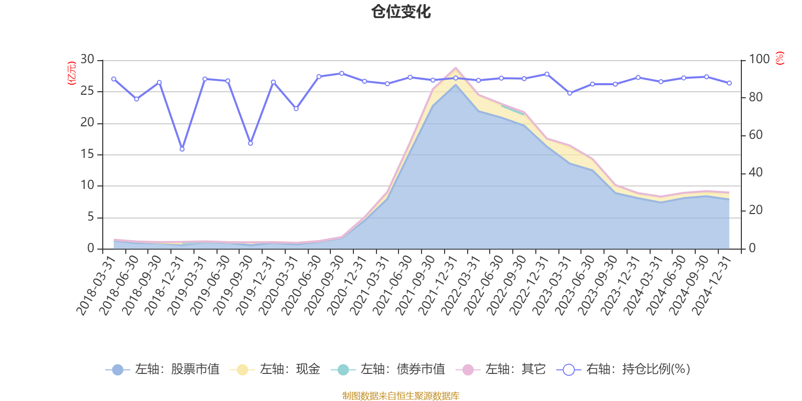 据定期报告数据统计,近三年平均股票仓位为89.06%,同类平均为79.88%。2020年三季度末基金达到93%的最高仓位,2018年末最低,为52.85%。