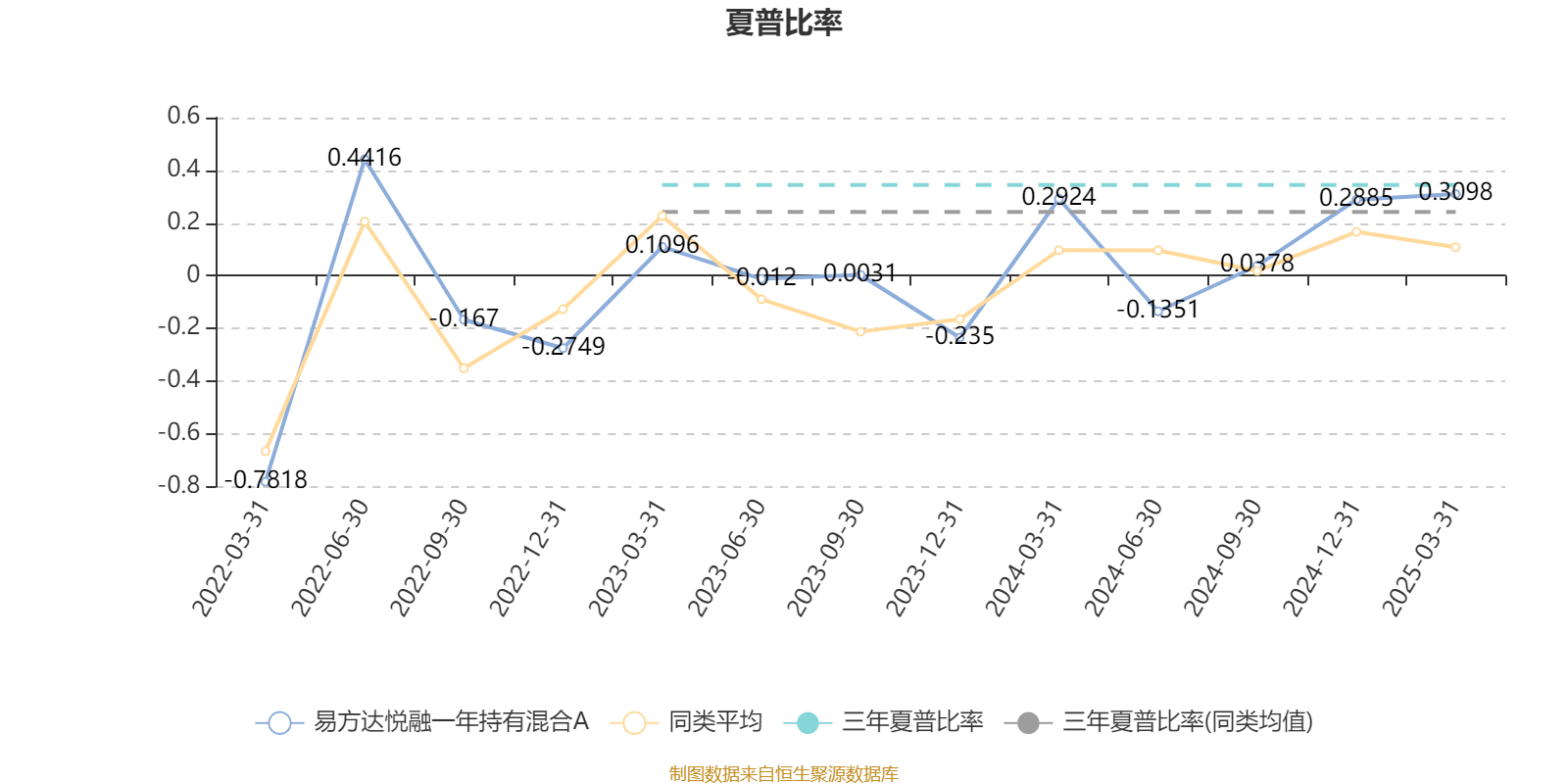 截至3月31日,基金近三年夏普比率为0.3439,位于同类可比基金231/545。