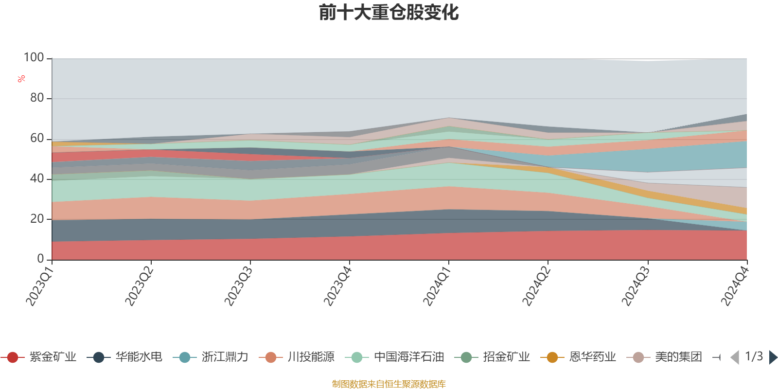 该基金持股集中度较高。截至2024年末,基金十大重仓股分别是紫金矿业、腾讯控股、美的集团、海尔智家、神火股份、久立特材、浙江鼎力、中国海洋石油、迈瑞医疗、恩华药业。