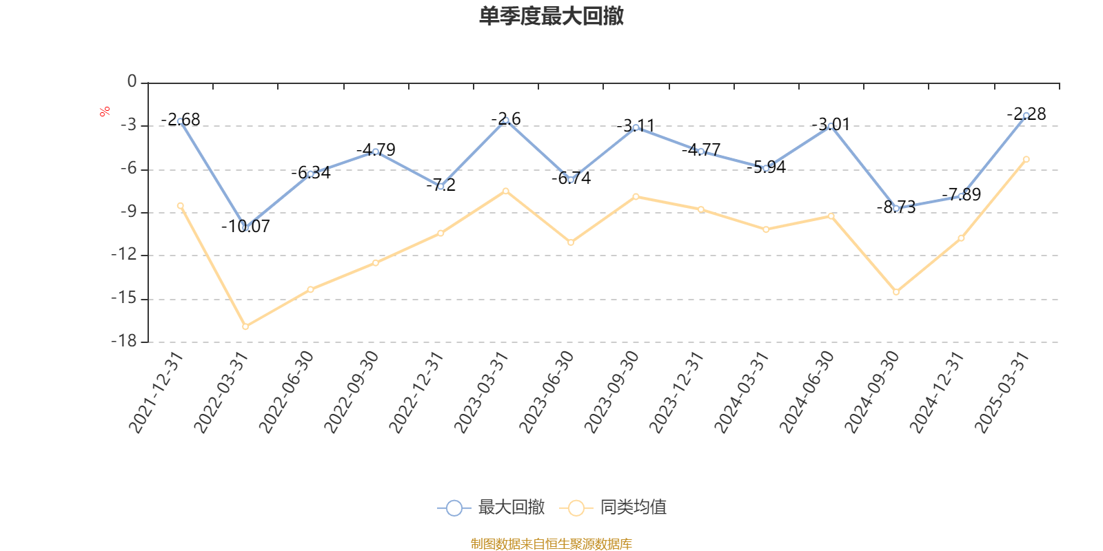 截至4月3日,基金近三年最大回撤为9.25%,同类可比基金排名65/65。单季度最大回撤出现在2022年一季度,为10.07%。