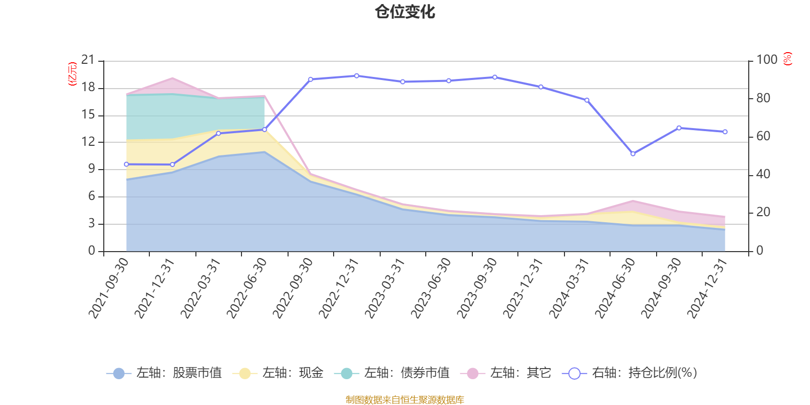 据定期报告数据统计,近三年平均股票仓位为76.86%,同类平均为83.58%。2022年末基金达到92.13%的最高仓位,2021年末最低,为45.58%。