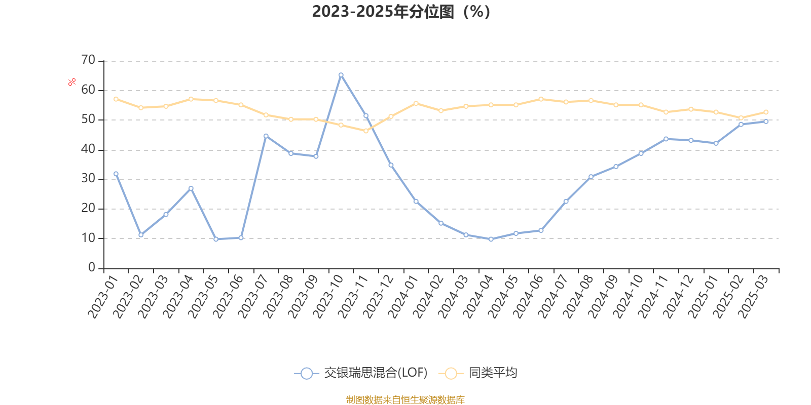 通过所选区间该基金净值增长率分位图,可以观察该基金与同类基金业绩比较情况。图为坐标原点到区间内某时点的净值增长率在同类基金中的分位数。