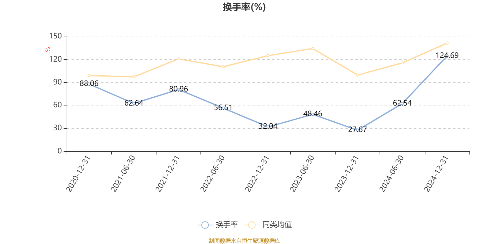 截至2024年12月31日,基金最近一年换手率约177.39%,持续低于同类均值。