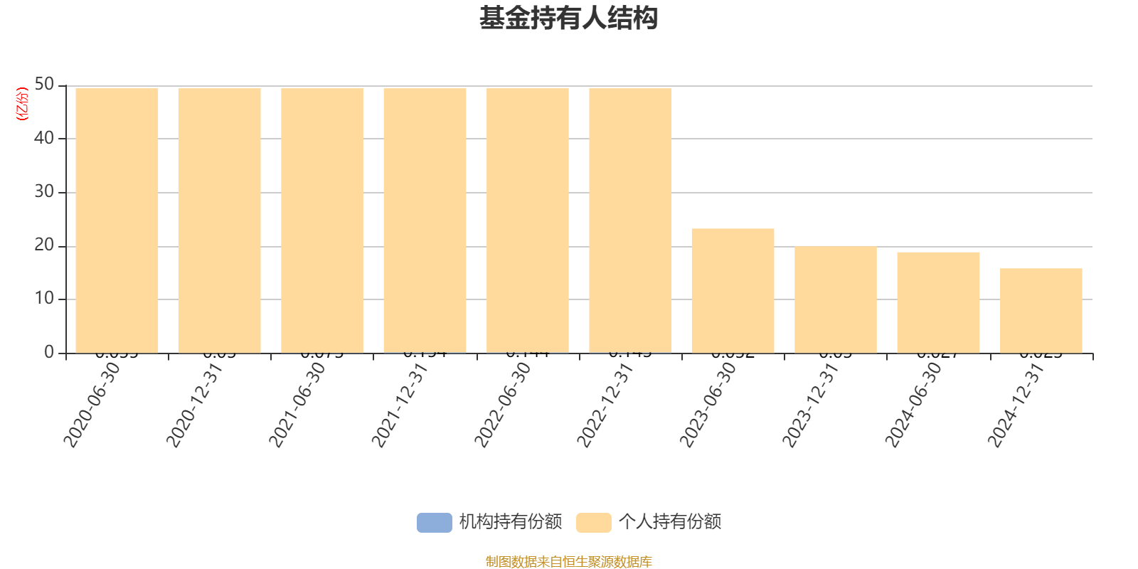 截至2024年12月31日,基金持有人共计1.87万户,合计持有15.83亿份。其中管理人员工持有48.83万份,占比0.03%,机构持有份额占比0.14%,个人投资者占比99.86%。