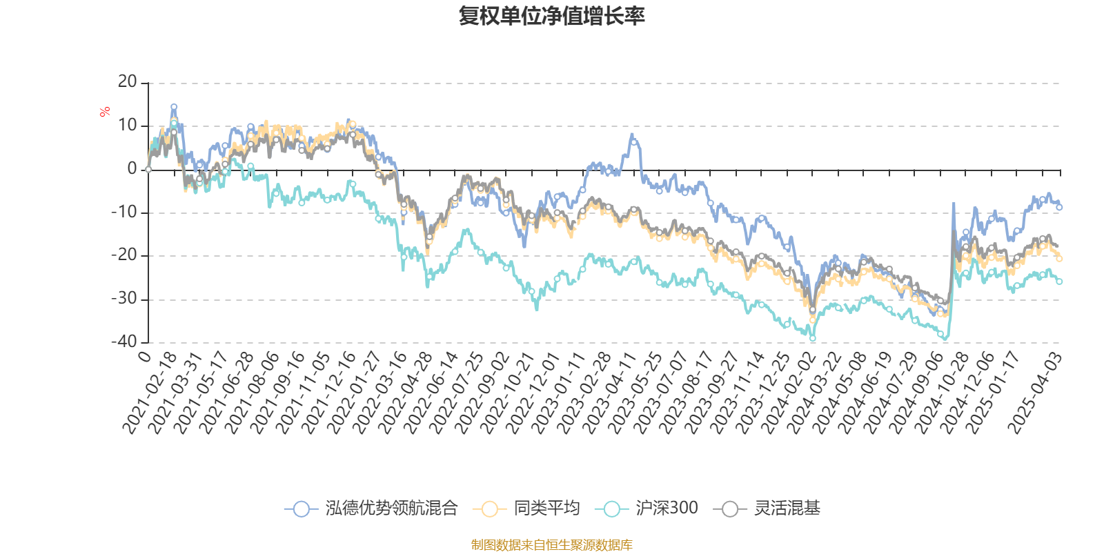 截至4月3日,泓德优势领航混合近三个月复权单位净值增长率为8.96%,位于同类可比基金204/918;近半年复权单位净值增长率为6.55%,位于同类可比基金182/918;近一年复权单位净值增长率为17.12%,位于同类可比基金155/918;近三年复权单位净值增长率为-1.32%,位于同类可比基金213/901。