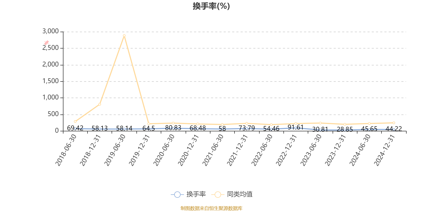 截至2024年12月31日,基金最近一年换手率约87.6%,持续低于同类均值。