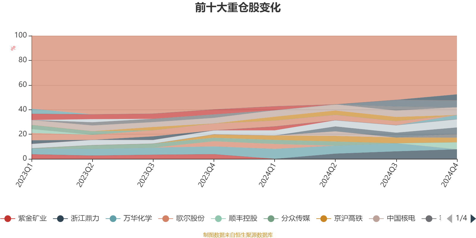 截至2024年末,基金十大重仓股分别是浙江鼎力、伯特利、中控技术、顺丰控股、安井食品、恒玄科技、药明康德、京沪高铁、爱博医疗、容百科技。