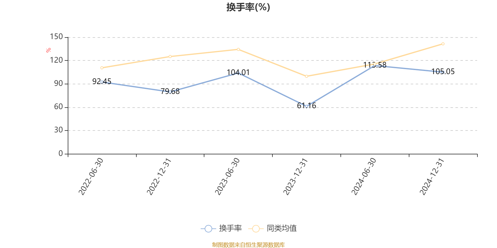 截至2024年12月31日,基金最近一年换手率约218.34%,持续低于同类均值。