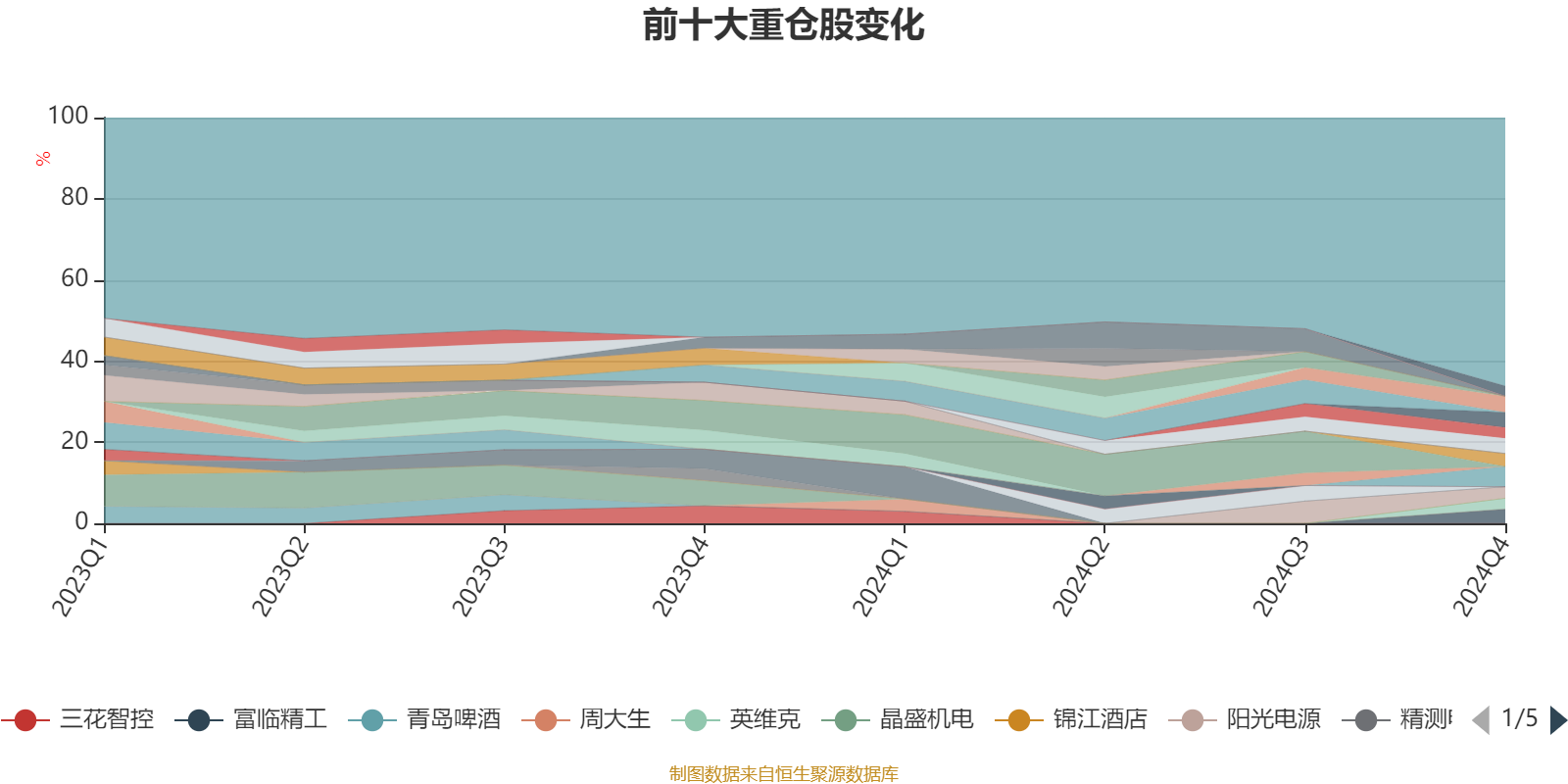 截至2024年末,基金十大重仓股分别是宁德时代、新泉股份、立讯精密、尚太科技、富临精工、瀚蓝环境、阳光电源、英维克、许继电气、东山精密。