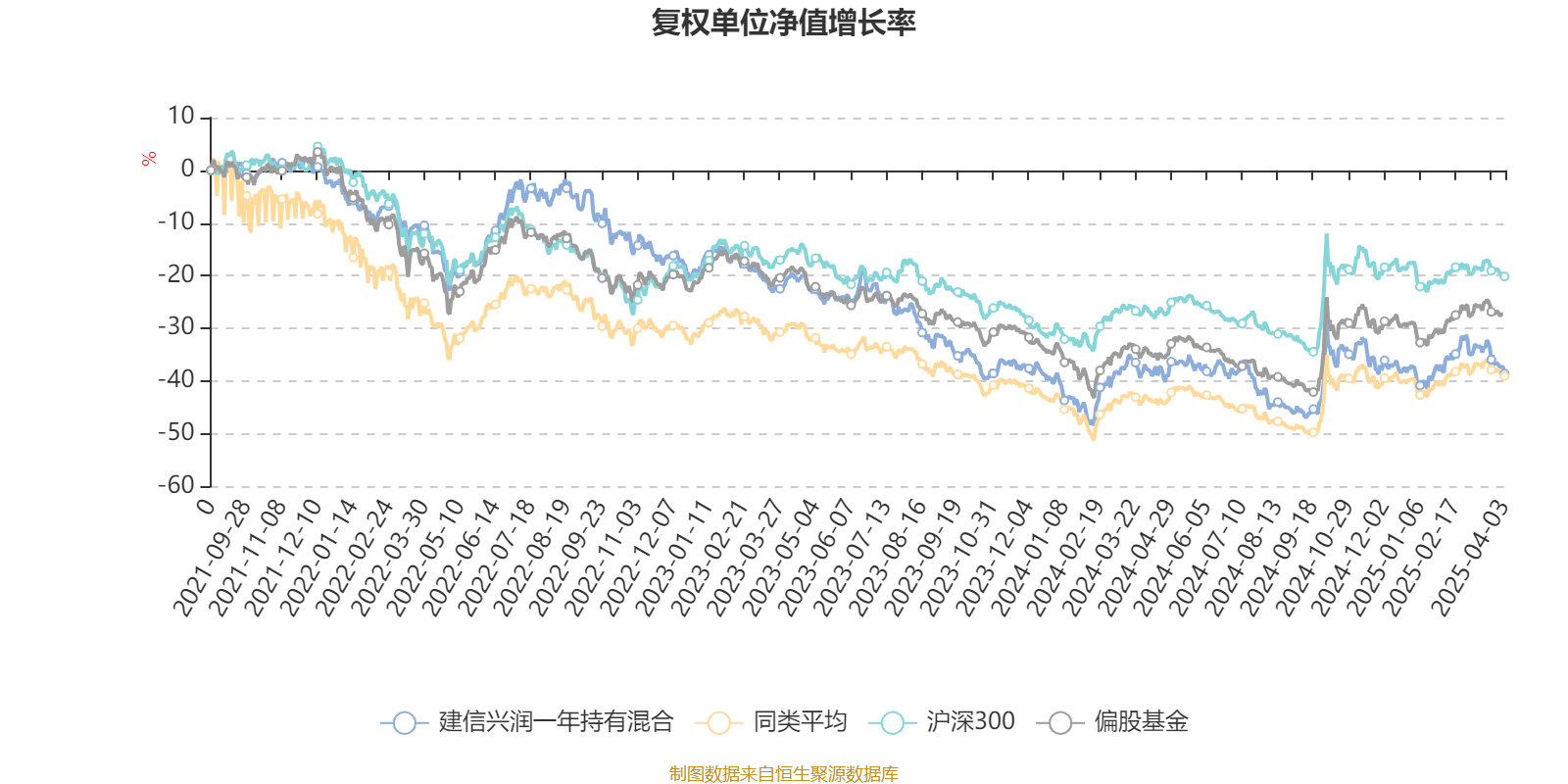 截至4月3日,建信兴润一年持有混合近三个月复权单位净值增长率为4.17%,位于同类可比基金134/211;近半年复权单位净值增长率为-7.16%,位于同类可比基金173/210;近一年复权单位净值增长率为-1.08%,位于同类可比基金171/210;近三年复权单位净值增长率为-30.98%,位于同类可比基金177/197。
