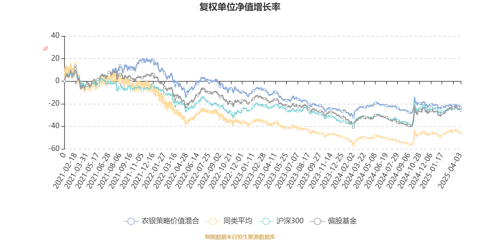 截至4月3日,农银策略价值混合近三个月复权单位净值增长率为0.71%,位于同类可比基金566/646;近半年复权单位净值增长率为-7.46%,位于同类可比基金578/646;近一年复权单位净值增长率为-1.88%,位于同类可比基金547/639;近三年复权单位净值增长率为-21.60%,位于同类可比基金340/488。